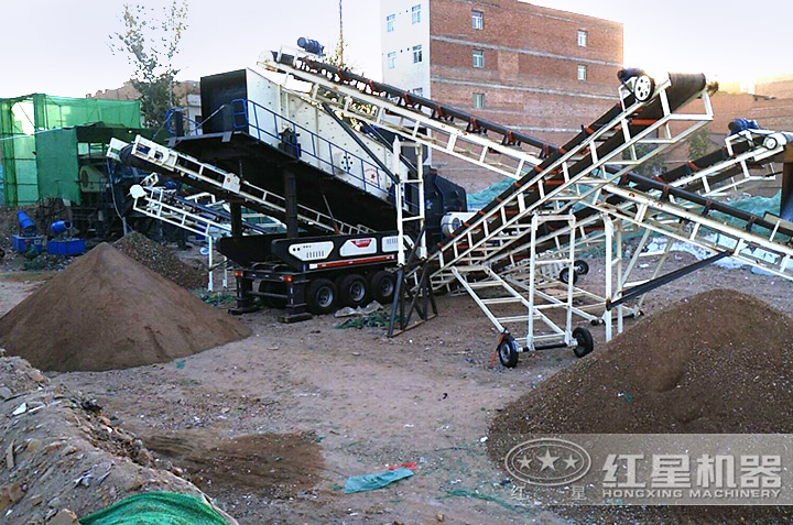 移動(dòng)碎石機(jī):西安建筑垃圾處理現(xiàn)場(chǎng)